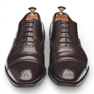 Carmina '10051' cap toe oxford semi brogues in dark brown 'Marron' calf. In excellent used condition, showing minor signs of wear.