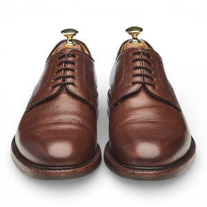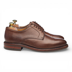 Berwick '4169' plain toe derby in brown country grain calf. In excellent used condition, showing minor signs of wear.