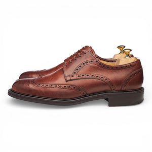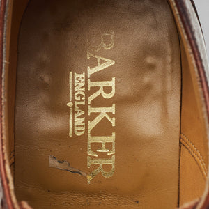 Barker 'Grassington' derby wingtip brogues in 'cherry' brown grain calf. In excellent used condition, showing minor signs of wear.