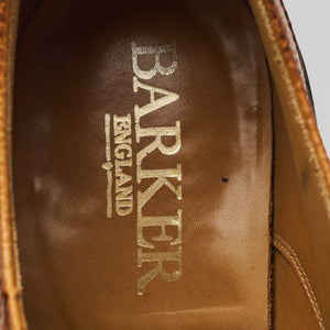 Barker 'Grassington' derby wingtip brogues in 'cedar' tan brown grain burnished calf. In excellent used condition, showing minor signs of wear.