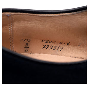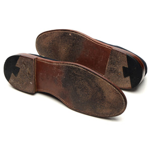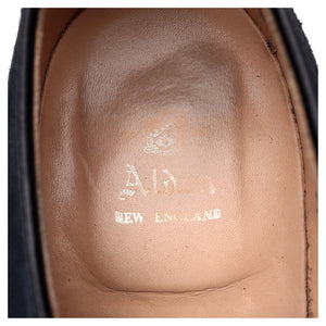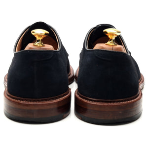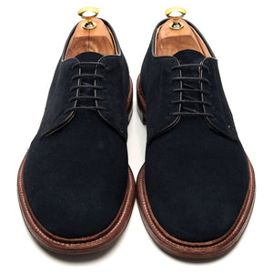 Alden '29331F' plain toe derby in navy blue suede. In excellent used condition, showing minor signs of wear.