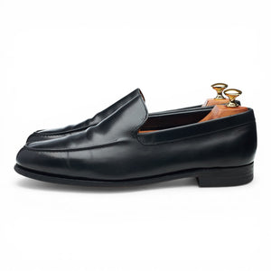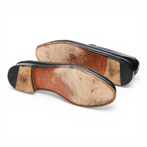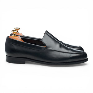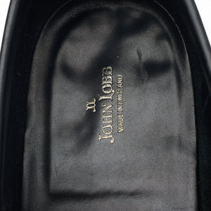 John Lobb 'Chester' slip on apron loafer in black calf. In very good used condition, showing moderate signs of wear.