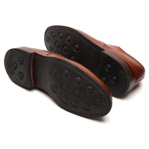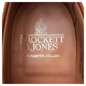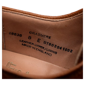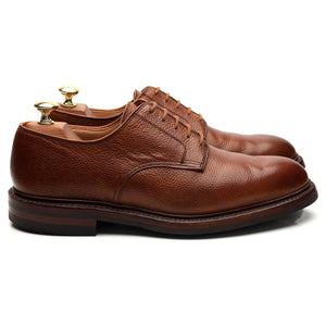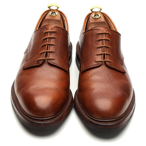 Crockett & Jones 'Grasmere' plain toe derby in tan brown scotch grain calf. In excellent used condition, showing minor signs of wear.