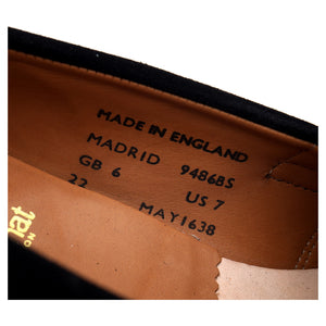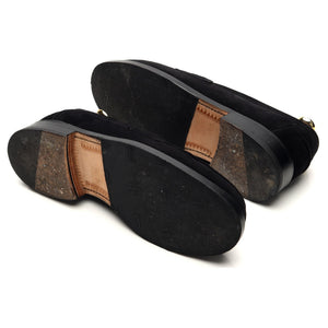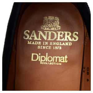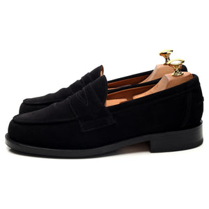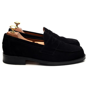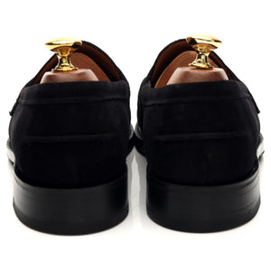 Sander's 'Madrid' penny loafer in black suede. In excellent used condition, showing minor signs of wear.