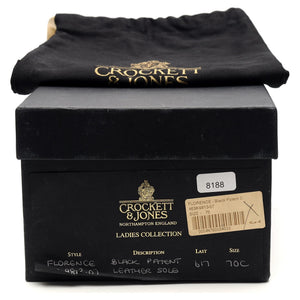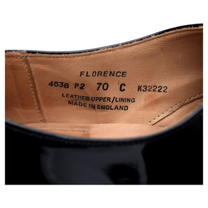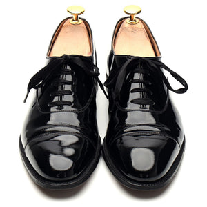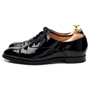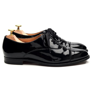 Crockett & Jones 'Florence' cap toe oxford in black patent leather. In excellent used condition.