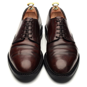 Edward Green 'Windermere' plain toe derby in burgundy Shell cordovan leather. In very good used condition, showing moderate signs of wear, with creasing to the vamps.