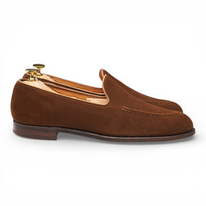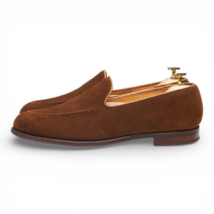 Crockett & Jones 'Camden' loafer in snuff brown suede. In excellent used condition, showing minor signs of wear.