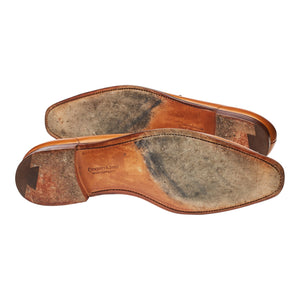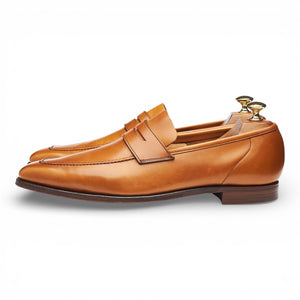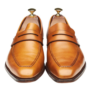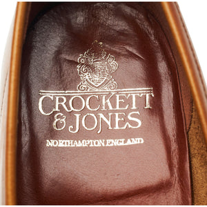Crockett & Jones 'Granada' unlined penny loafer in tan brown burnished calf. In excellent used condition, showing minor signs of wear.