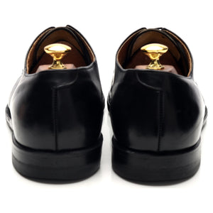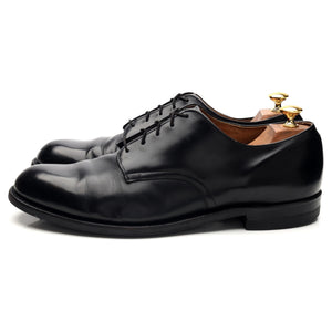 Vintage unbranded derby in black polished calf. In very good used condition, showing moderate signs of wear and creasing across the vamps.