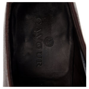 Cavour apron front split toe derby in brown hatch grain calf. In excellent used condition, showing minor signs of wear.