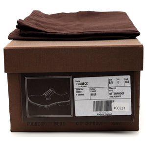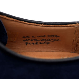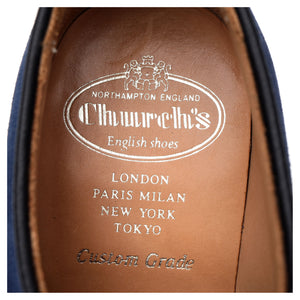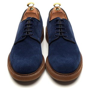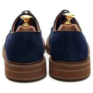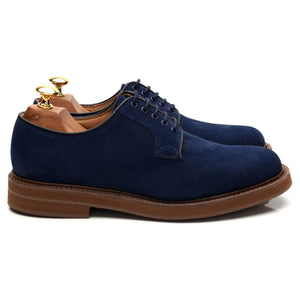 Church's 'Fulbeck' plain toe derby in blue suede. In excellent used condition.