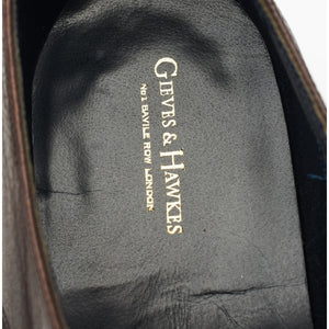 Cheaney manufactured for Gieves & Hawks derby in dark brown pebble grain burnished calf.