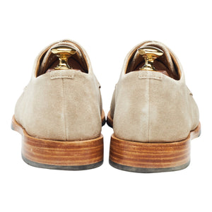 Grenson 'Taylor' plain toe derby in beige suede. In excellent used condition, showing minor signs of wear.