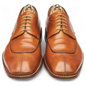 Gravati manufactured for Wayne Edwards split toe derby in tan brown calf. In very good used condition, showing moderate signs of wear.