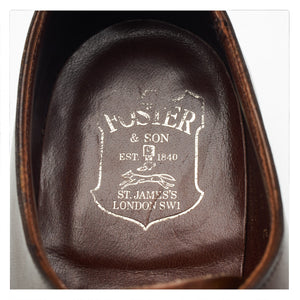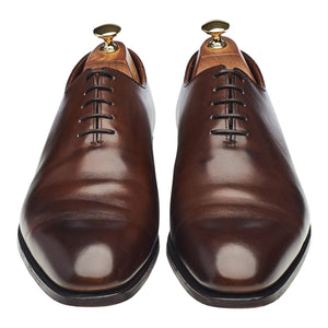 Crockett & Jones manufactured for Foster & Son 'Albemarle' wholecut oxford in dark brown antique calf. In excellent used condition, showing minor signs of wear.