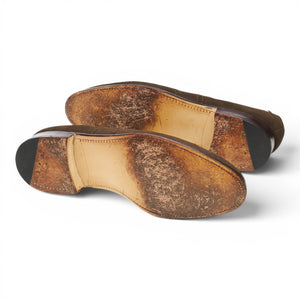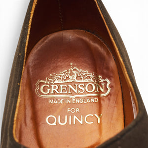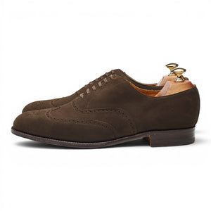 Grenson manufactured for Quincy oxford wingtip brogue in dark brown suede. In excellent used condition, showing minor signs of wear.