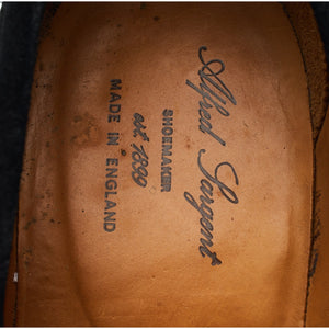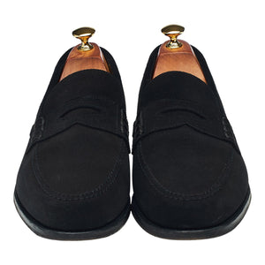 Alfred Sargent 'Finsbury' penny loafers in black suede. In excellent used condition, showing minor signs of wear.