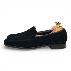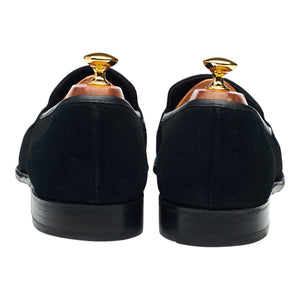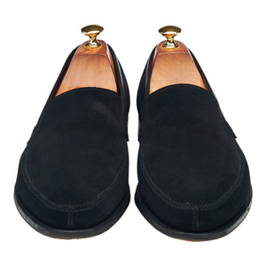 Crockett & Jones manufactured for New & Lingwood slip-on loafers in black suede. In excellent used condition, showing minor signs of wear.