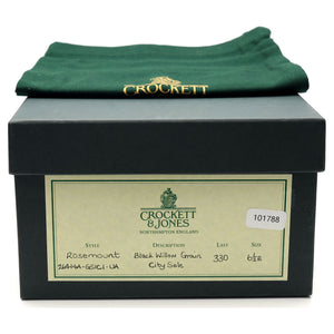 Crockett & Jones 'Rosemount' penny loafers in black willow grain calf. In excellent used condition, showing minor signs of wear.