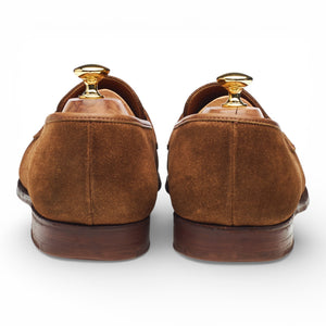 Crockett & Jones manufactured for Shipton & Heneage 'Wilton' penny loafer in snuff brown suede. In excellent used condition, showing minor signs of wear.