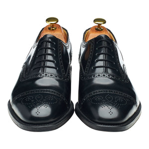 Loake manufactured for Charles Tyrwhitt cap toe oxford brogues in black polished calf.