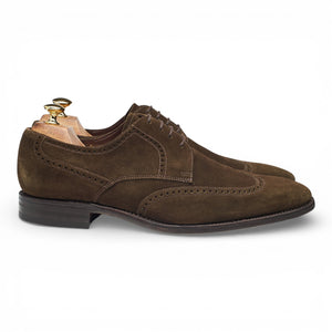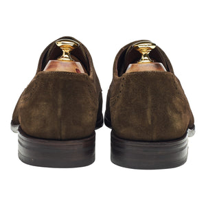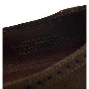 Loake Evolution 'Rockingham' wingtip derby brogue in dark green suede. In excellent used condition, showing minor signs of wear.