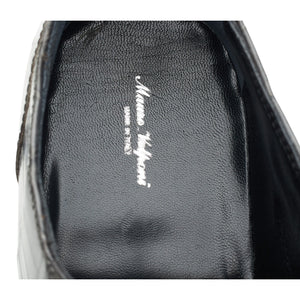 Mauro Volponi single buckle monk strap in grey alligator leather.