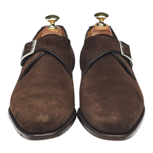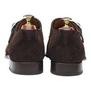 Carlos Santos 'Gareth 6307' monk strap in dark brown suede. In excellent used condition, showing minor signs of wear.
