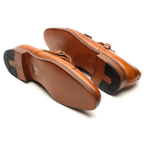 'William II' Tan Brown Museum Leather Double Monk Strap UK 10.5 E