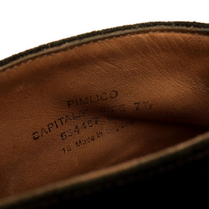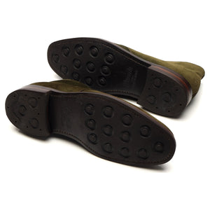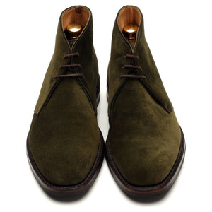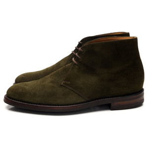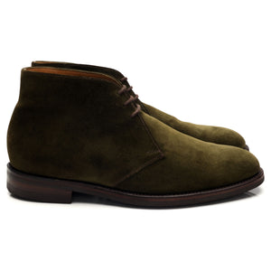 Loake 1880 'Pimlico' chukka boots in 'olive' green suede. In excellent used condition, showing minor signs of wear.