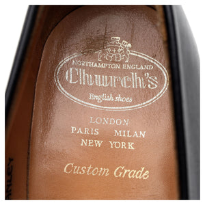 Church's 'Swanley' split toe penny loafers in black calf. In excellent used condition, showing minor signs of wear.