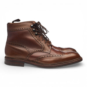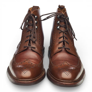 Loake 1880 'Bosworth' brogue derby boot in dark brown grain calf. In excellent used condition, showing minor signs of wear.