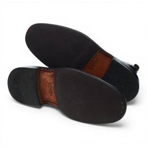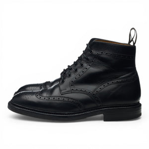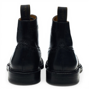 Loake 1880 'Burford 2' brogue derby boots in black calf. In excellent used condition, showing minor signs of wear.