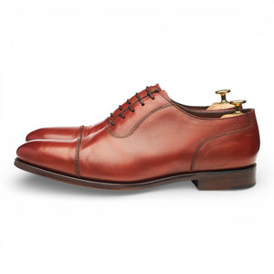 Loake 1880 Legacy 'Evans' cap toe oxford in 'conker' brown calf. In excellent used condition, showing minor signs of wear.