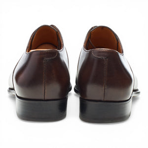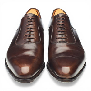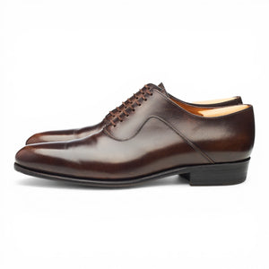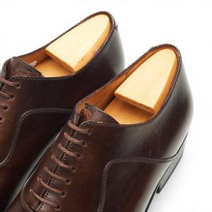 J.M. Weston '7 Eyelets' plain toe oxford in brown burnished calf. In excellent used condition, with minor creasing across the vamps.