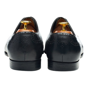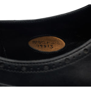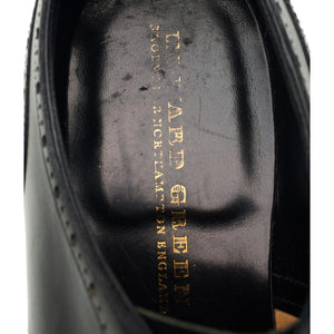 Edward Green cap toe derby, with broguing, in black calf. In excellent used condition, showing minor signs of wear.