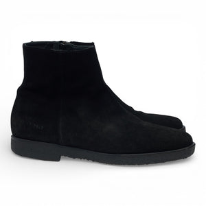 Common Projects Zip-up boots in black suede. In excellent used condition, showing minor signs of wear.