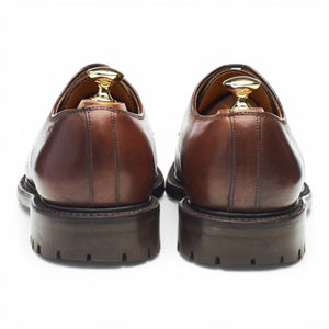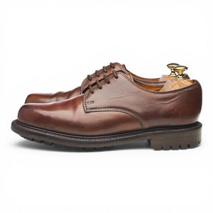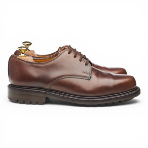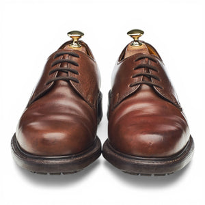 Grenson plain toe derby in dark brown calf. In excellent used condition, showing minor signs of wear.