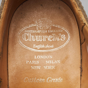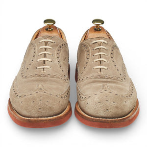 Church's 'Downton' brogues in sand suede. In very good used condition, showing moderate signs of wear.