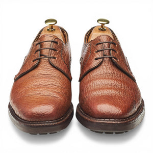 Crockett & Jones vintage 'Dundee' plain toe derby in brown grain calf. In very good used condition, showing moderate signs of wear.