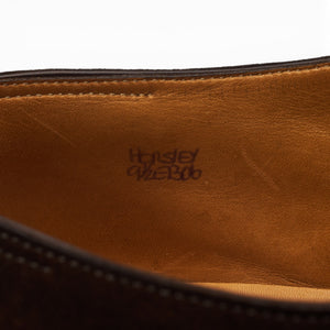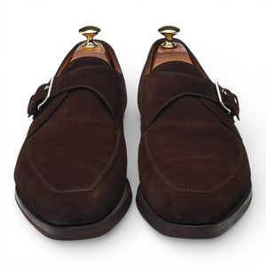 John Lobb 'Horsley' monk strap in dark brown suede. In excellent used condition, showing minor signs of wear.