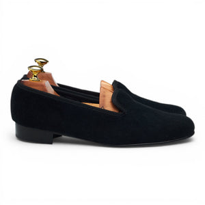 Tricker's manufactured for Margaret Howell 'Victoria' slippers in black velvet.