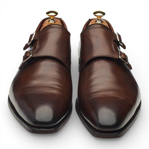 Crockett & Jones 'Seymour 3' double monk strap in dark brown antique calf. In excellent used condition, with light creasing across the vamps.