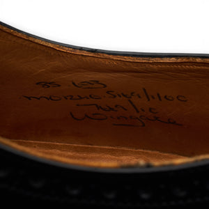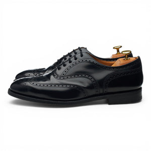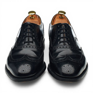 Church's 'Wingate' oxford wing tip brogues in black polished calf. In excellent used condition, showing minor signs of wear and light creasing across the vamps.