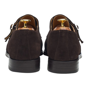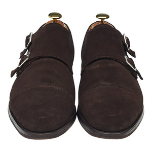 Berwick '3637' double buckle monk strap in dark brown suede. In excellent used condition, showing minor signs of wear.
