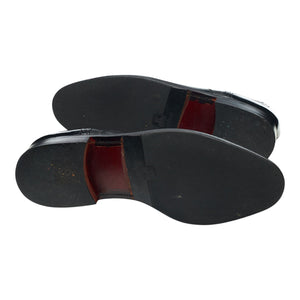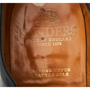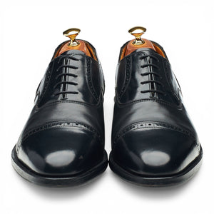 Sanders 'Andy' cap toe oxford semi brogues in black calf and black polished calf. In excellent used condition, showing minor signs of wear.