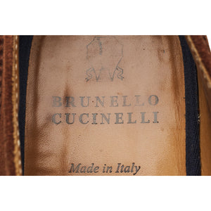 Brunello Cucinelli derby wingtip brogues in brown suede. In excellent used condition, showing minor signs of wear.