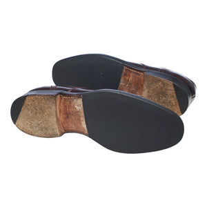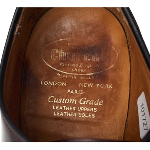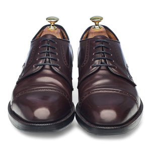 Church's 'Kingston' cap toe derby with broguing in burgundy polished calf. In excellent used condition, showing minor signs of wear.