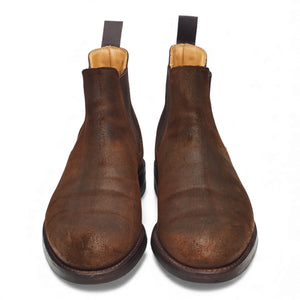 Crockett & Jones 'Chelsea 5' Chelsea boots in dark brown rough-out suede. In excellent used condition, showing minor signs of wear.