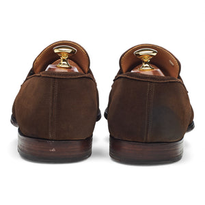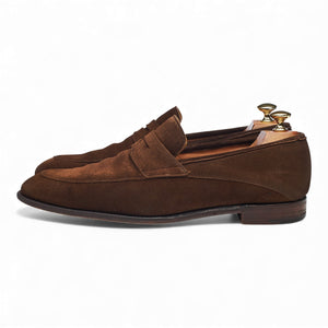 Cheaney 'Lewisham' penny loafer in brown suede. In very good used condition, showing moderate signs of wear.